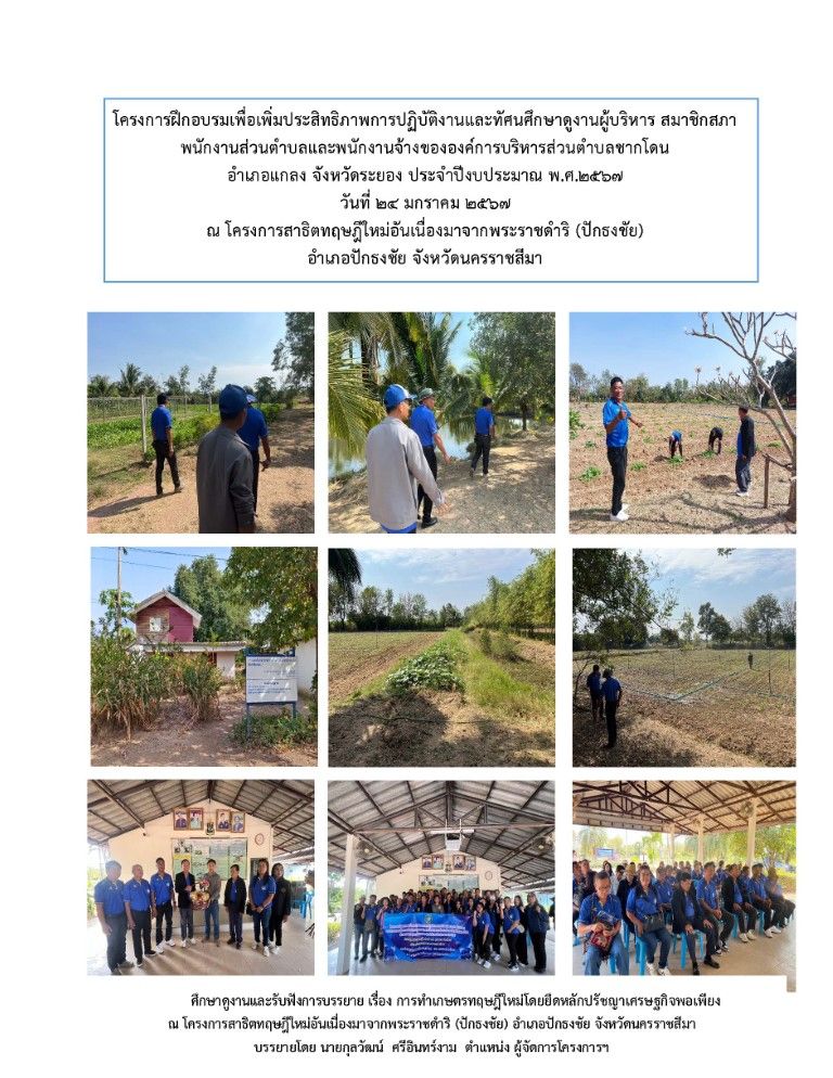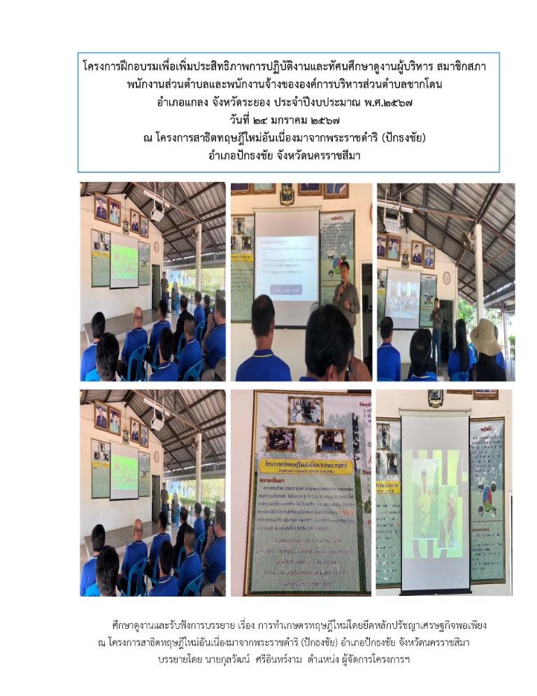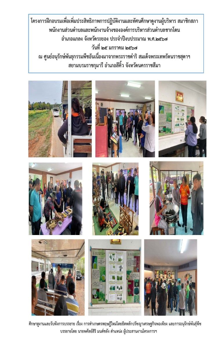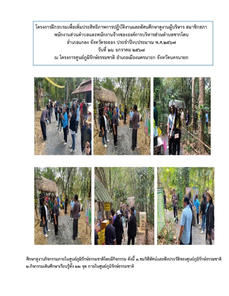 โครงการฝึกอบรมเพื่อเพิ่มประสิทธิภาพการปฏิบัติงานและทัศนศึกษาดูงานผู้บริหาร สมาชิกสภา พนักงานส่วนตำบลและพนักงานจ้าง ขององค์การบริหารส่วนตำบลชากโดน อำเภอแกลง จังหวัดระยอง ประจำปีงบประมาณ พ.ศ. 2567