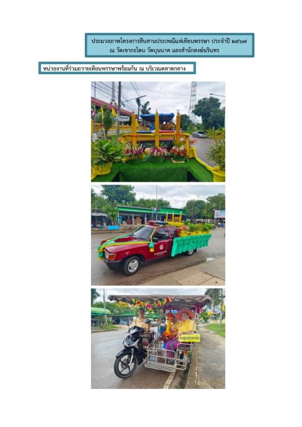 โครงการสืบสานประเพณีแห่เทียนพรรษา ประจำปีงบประมาณ 2567 วันที่ 25 กรกฎาคม 2567 [ 20:05 น. ] เข้าชม 3 ครั้ง พิมพ์ ภาพกิจกรรม โครงการสืบสานประเพณีแห่เทียนพรรษา ประจำปีงบประมาณ 2567 กองการศึกษา ศาสนาและวัฒนธรรม องค์การบริหารส่วนตำบลชากโดน ดำเนินการจัดโครงการสืบสานประเพณีแห่เทียนพรรษา ประจำปี 2567 ในวันศุกร์ที่ 19 กรกฎาคม 2567 นำโดยนายกจรูญ เที่ยงชัด นายกองค์การบริหารส่วนตำบลชากโดน พร้อมด้วยคณะผู้บริหาร พนักงานข้าราชการและพนักงานจ้าง กำนัน ผู้ใหญ่บ้าน ผู้ช่วยแพทย์ สารวัตร สตรีอาสา บทบาทสตรี รพ.สต. อสม. ชมรมผู้สูงอายุ และกลุ่มองค์กรต่างๆ ในตำบลชากโดน ร่วมถวายเทียนจำนำพรรษาที่วัดเขากะโดน, สำนักสงฆ์นรินทร์(วังล่าง) และวัดบุนนาค อัลบั้มภาพ